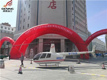 2018年9月6日,2018蒙商-通遼項目合作洽談會暨通遼蒙商經(jīng)濟發(fā)展促進會揭牌儀式在內(nèi)蒙古通遼市榮達酒店舉行。通遼市神鷹通用航空有限公司作為會員單位參加了此次活動?;顒又校?/span>展示了公司自主研發(fā)的先鋒一號無人機和新引進的美國羅賓遜R44直升機,受到了與會領導與嘉賓的一致好評。