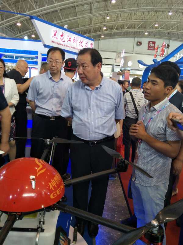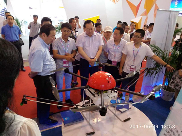 自治區(qū)副主席白向群蒞臨展會,參觀公司參展的植保無人飛機(jī)。