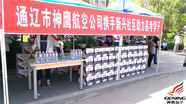 為了給莘莘學(xué)子們加油打氣,用實際行動表達(dá)對考生和家長們的關(guān)切之情,6月7日一大早,通遼市神鷹通用航空有限公司攜手新興社區(qū)開展的以“護(hù)航高考獻(xiàn)愛心”為主題的愛心送水活動正式開始了,活動地點設(shè)在了通遼一中和奈曼一中考點外,同時愛心送水點搭建了臨時帳篷,以方便家長們休息等待。